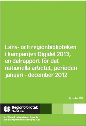 Rapporten, av Ann Wiklund,  beskriver den nationella samordningen av läns- och regionbibliotekens arbete i kampanjen för ökad digital delaktighet, Digidel 2013, under perioden januari – december 2012.