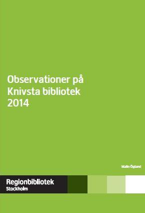 Regionbibliotek Stockholm är partner till Kungliga Biblioteket (KB) 2013-2015. I detta uppdrag ska Regionbibliotek Stockholm arbeta för att identifiera områden som inte kan täckas in av den nationella biblioteksstatistiken och ta fram och testa metoder som kompletterar statistiken. Regionbibliotek Stockholm strävar efter, genom att utföra en observation på Knivsta bibliotek, ett brett underlag och större möjligheter att dra generella slutsatser om hur biblioteksrummet tas i bruk och av vem. Läs mer i rapporten via länken till höger.